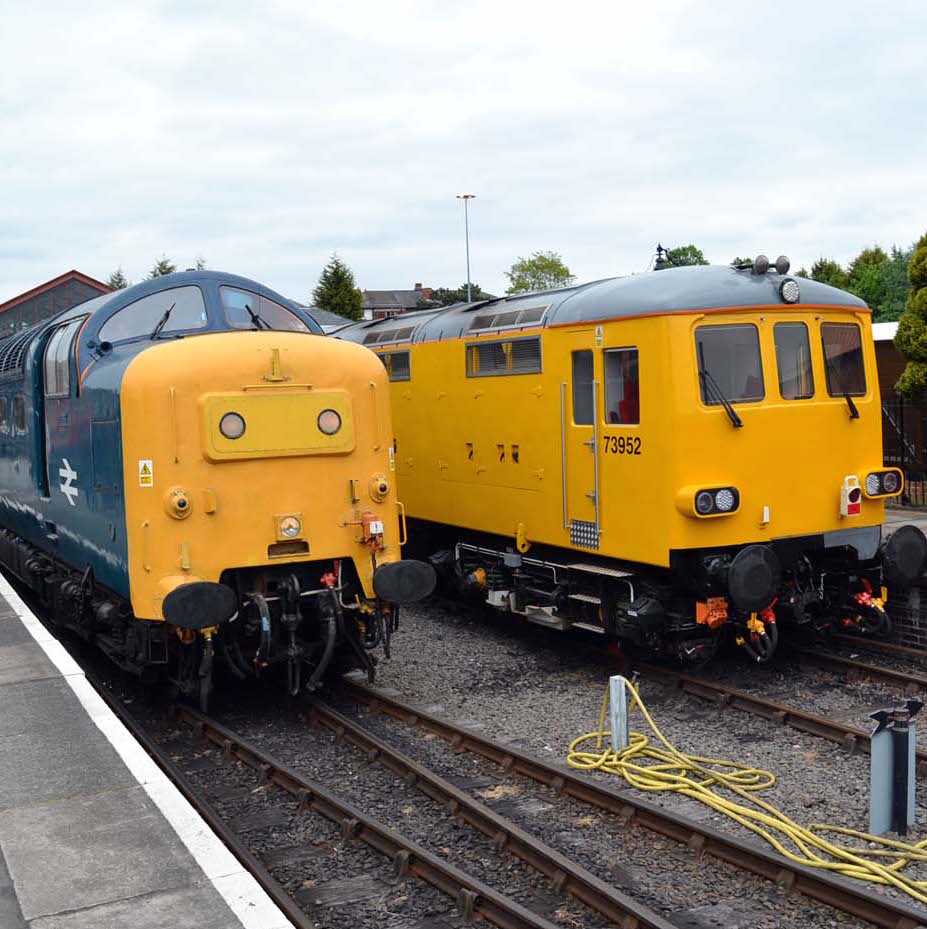 55 019 and 73 952 at Kidderminster on the Severn Valley Railway.